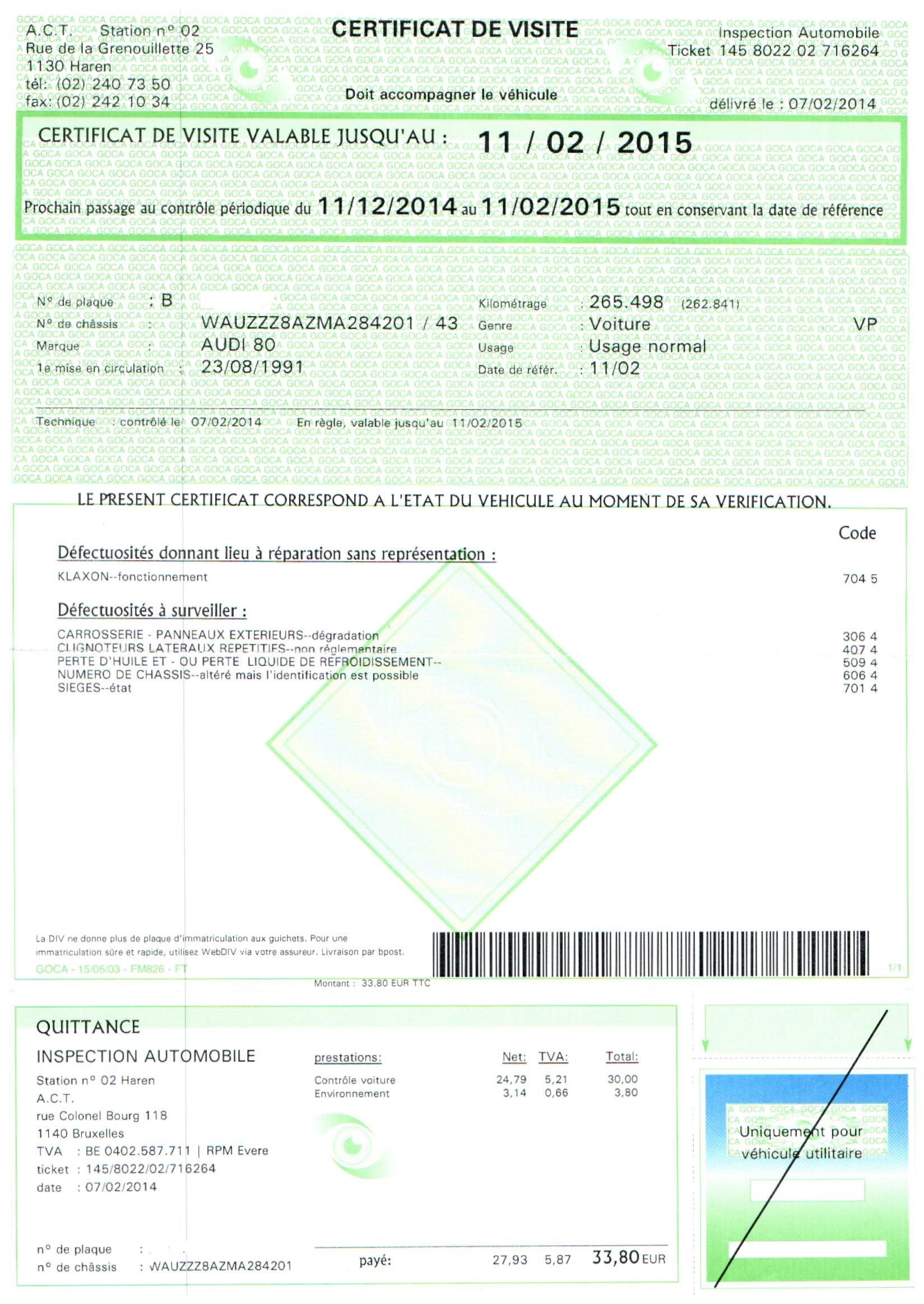 Le véhicule est en état de marche, contrôle technique périmé le 12/02/2015, pas de car-pass